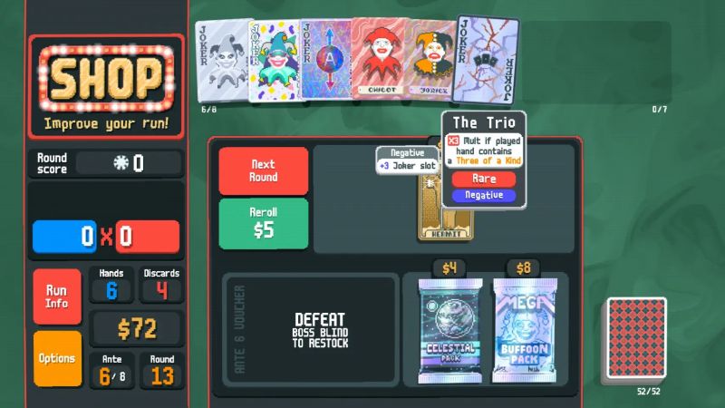 The Ukryte Asy mod zmienia wszystko Balatro i ułatwia grę pod każdym względem. Zasadniczo masz gwarancję, że ukończysz grę z zainstalowanym tym modem — jest on przeznaczony dla początkujących i pomaga ci zatrzeć żaluzje, zamiast ciągle zawodzić. Jeśli chcesz po prostu dobrze się bawić grając Balatroto jest Twój łatwy tryb.