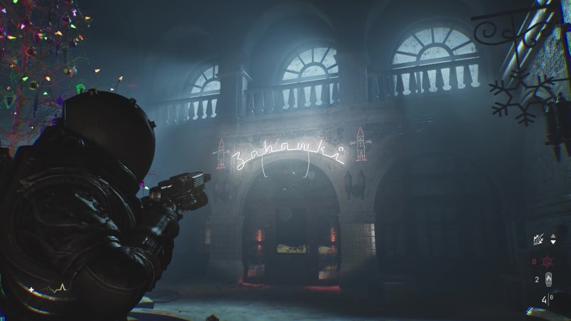 - Użyj przełącznika, aby odblokować drzwi prowadzące z powrotem do Stacja B Outpost – Przejdź przez tylne drzwi i wróć do okolicy z choinką. Z tyłu znajduje się sklep z zabawkami.