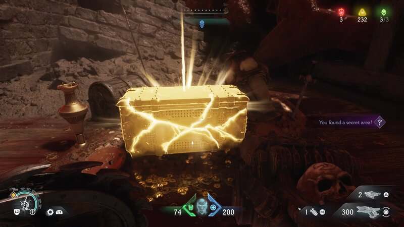 Secret #1 (Ruby): W świątyni Blue Skull Key odwróć się i znajdź dziurę z niebieską podkładką skoku, która wystrzeliwuje pogromcę do wyżej na wyższym poziomie świątyni z rozciągniętą skórą jako chodnik. Podążaj ścieżką, a będziesz w stanie spaść do demonicznego ołtarza za bramą. Jest tu przedmiot aktualizacji Ruby.