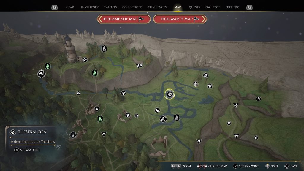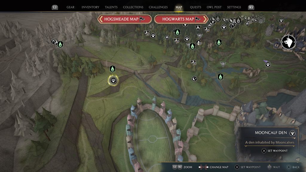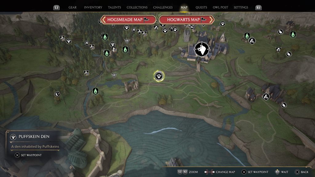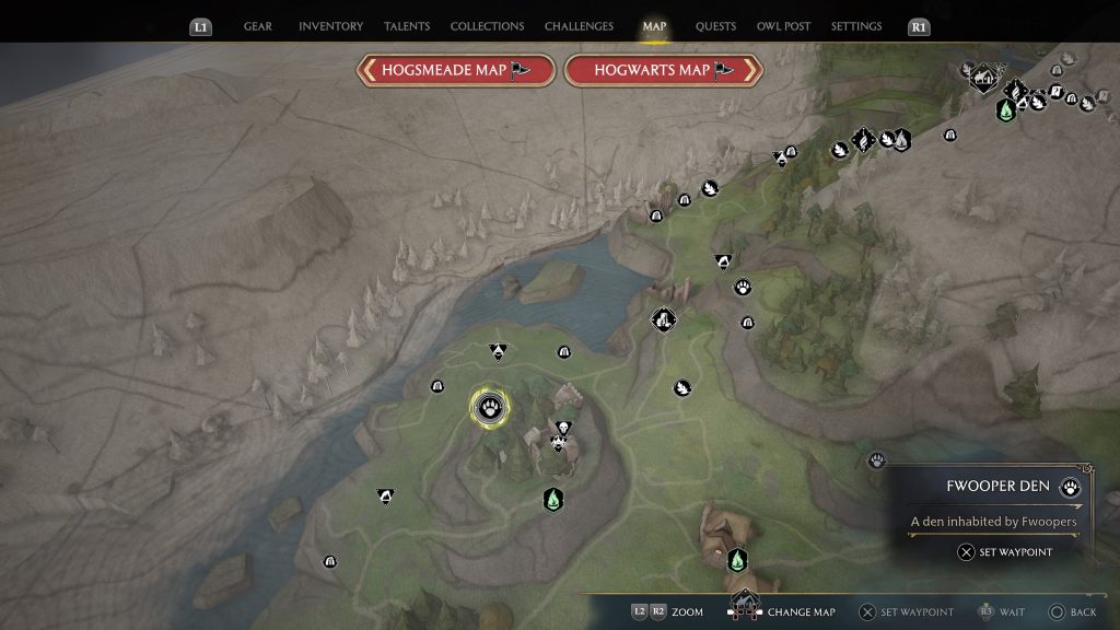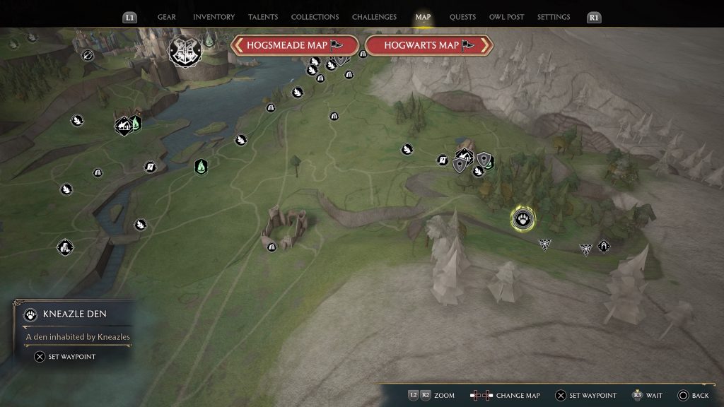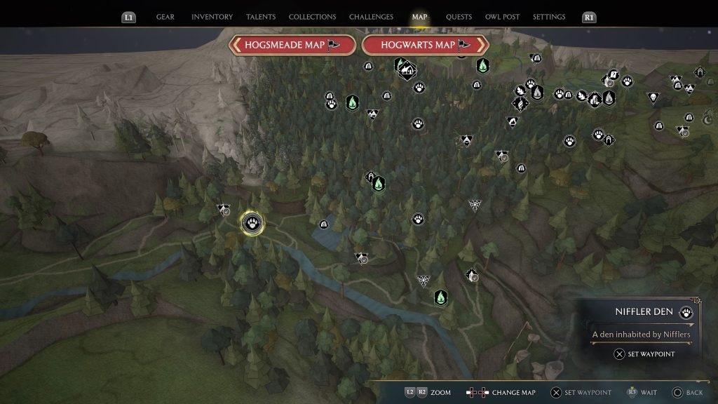 Niszczyciel: Podążaj wzdłuż rzeki na północny zachód od regionu wschodnio-północnego Hogwartu Płomień Floo, aby znaleźć legowisko Nifflera. Znajduje się tuż przy wejściu do Zakazanego Lasu, miejsca pełnego magicznych bestii do schwytania.