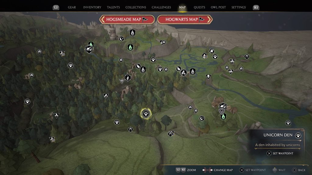 Jednorożec: Na zachód od wioski Upper Hogsfield, w Zakazanym Lesie, znajdziesz Jaskinię Jednorożca. Podobnie jak hipogryfy, będziesz musiał użyć oszałamiających zaklęć, aby je schwytać, inaczej uciekną od ciebie.