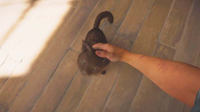Po wejściu do mieszkania można znaleźć to siedzące na ziemi w pobliżu korytarza, które prowadzą do drzwi. Współpracuj z kotem, aby go pogłaskać. Za pierwszym razem, gdy to zrobisz, odblokujesz osiągnięcie „zwierzaka kota”.