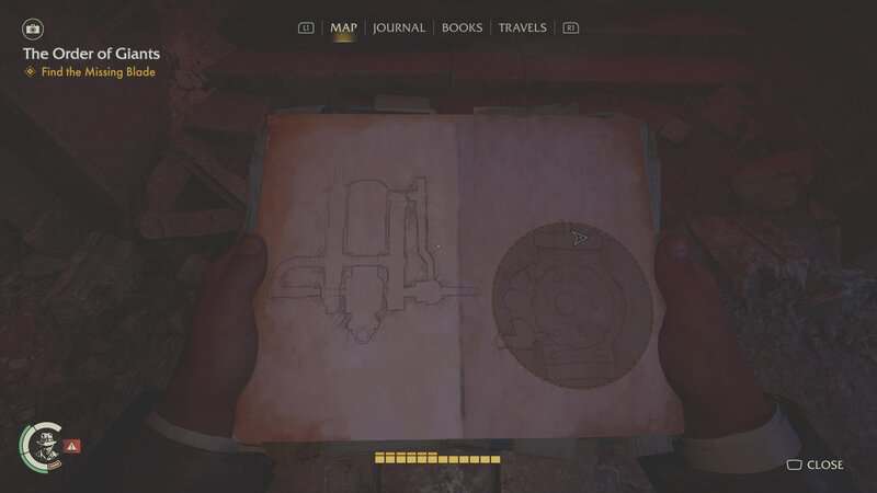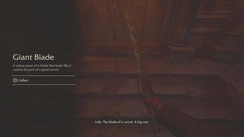 Spójrz na podstawę mural niedźwiedzia, aby znaleźć gigantyczne ostrze na ziemi. Zabierz ostrze do bezgłowego posągu i włóż ostrze do pustej rękojeści. Spowoduje to, że bezgłowy posąg podniesie miecz nad głową.