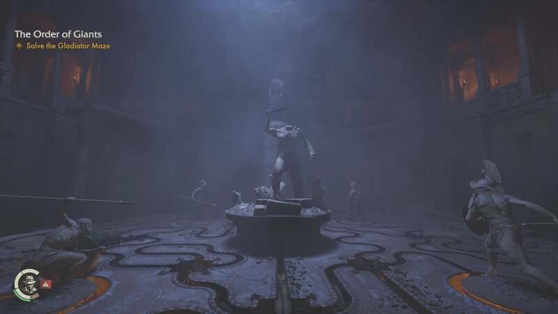 Idź na północny koniec Cloaca Maxima i przez przejście na północnej ścianie. Przejdź przez przejście, a następnie przejdź przez dziurę w ścianie, aby wejść do dużej komory z bezgłową posągiem pośrodku otoczonego 4 posągami gladiatorów. Będziesz musiał zdobyć płonącą piłkę, aby przejść przez każdy z posągów w określonej kolejności, aby ukończyć tę układankę.