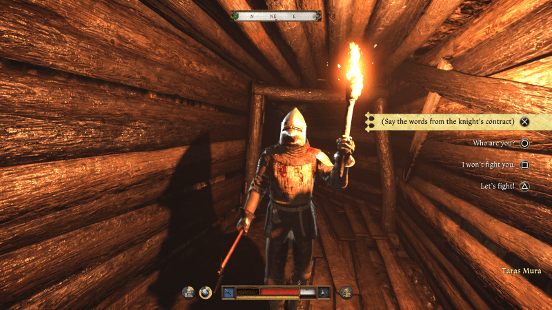 Jeśli nie uspokojesz wieśniaków, możesz walczyć – możesz po stronie wieśniaków lub rycerza. Jeśli zdasz kontrolę mowy, uspokoisz obie strony i spokojnie zakończysz bok.