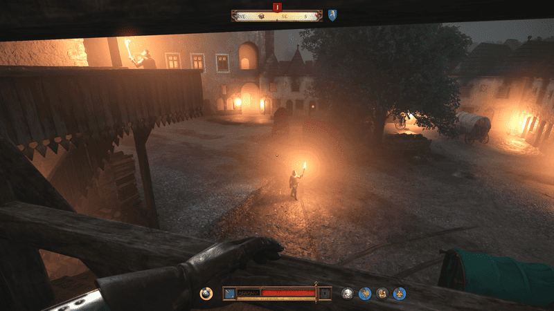 Po kontaktach z sądem Henry pojawi się poza kuchnią. Będziesz musiał prześlizgnąć się przez battlents i bez złapania. Zacznij od wspinania się po drabinie, w lewo i przeskakując przez ścianę, aby dotrzeć do batterów. Patrują tu dwóch strażników – jeden po lewej i jeden po prawej. Zacznij od lewego strażnika i wyciągnij go.