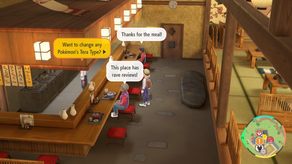 - Rozmawiać z NPC szefa kuchni za barem w lewym tylnym rogu restauracji. Ona zaproponuje zmień swój typ Tera.