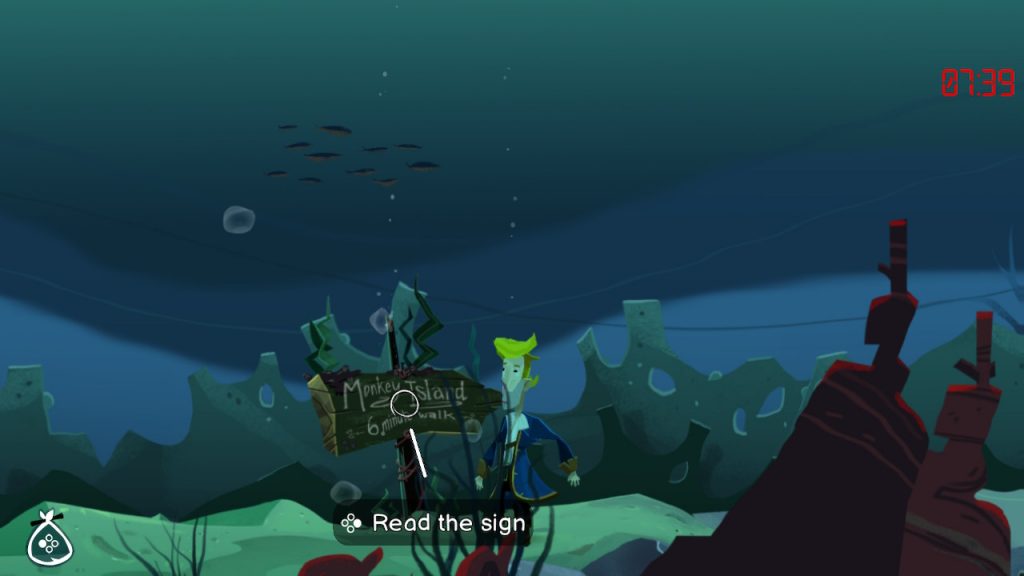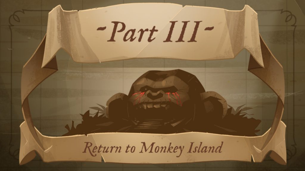 Kiedy część 3 z Powrót na Małpie Wyspy zaczyna, Guybrush Threepwood znajduje się na dnie oceanu, w odległości sześciu minut spaceru od brzegów wyspy. Choć nie pozostaje pod wodą na długo, reszta rozdziału jest pełna zagadek i klasyki Małpia wyspa hijinx.