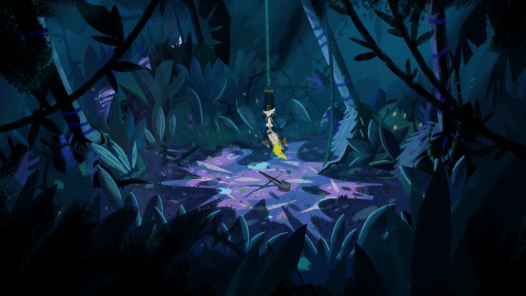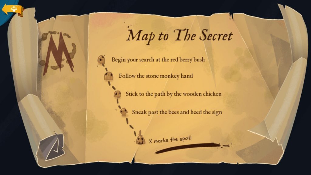 Ta sekcja działa podobnie do mapy, której musiałeś użyć, aby znaleźć drzewo uchwytów do mopa w części 1 gry. Jednak zamiast losowych kroków będziesz mógł po prostu postępować zgodnie z instrukcjami z mapy. Najpierw podejdź do ścieżki obok gigantycznej kamiennej ręki małpy. Następnie podążaj ścieżką obok drewnianego kurczaka. Podążaj za znakiem do sekretu przy pszczołach, a znajdziesz się w czystym „X” w błocie.