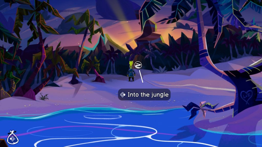 Nie ma wiele do zrobienia podczas spaceru na wyspę. Masz możliwość przyjrzenia się kilku rzeczom, ale tak naprawdę nie ma nic do interakcji w znaczący sposób poza całkowicie opcjonalną kartą ciekawostek. Idź cały czas w prawo, aż w końcu wylądujesz na brzegu.