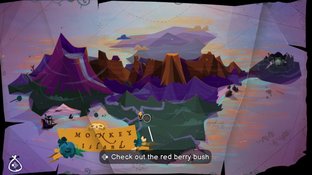 Jest kilka punktów orientacyjnych, do których możesz się udać na Monkey Island stąd, ale najpierw zacznij od krzaka czerwonych jagód, który znajduje się nieco na północny zachód od plaży, na której wylądowałeś.