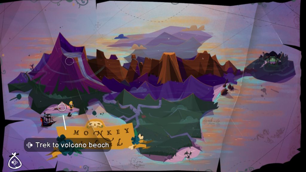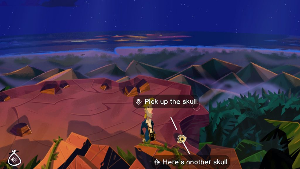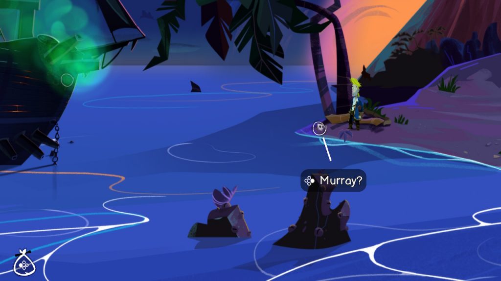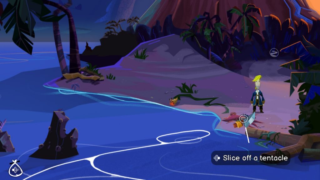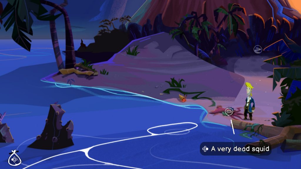 Gdy Madison powie ci, że potrzebujesz przedmiotu od załogi, udaj się do Volcano Beach po zachodniej stronie wyspy. Jak tylko dotrzesz na plażę, chwyć czaszkę, która znajduje się po lewej stronie. Po złapaniu czaszki zbadaj statek, a Guybrush wejdzie do wody w jego kierunku.