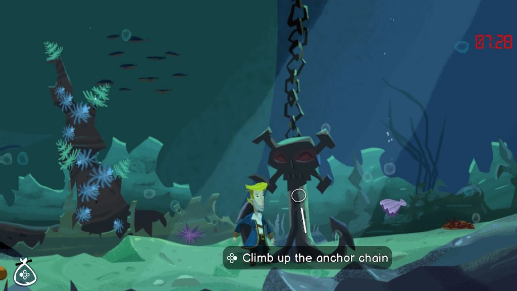 Gdy znajdziesz się pod wodą, idź w lewo, aż natkniesz się na kotwicę statku LeChucka. Zanim go zbadasz i wdrapiesz się na górę, idź dalej w lewo, a znajdziesz kolejną czaszkę do podniesienia. Gdy już go zdobędziesz, wróć do kotwicy i wdrap się na górę.