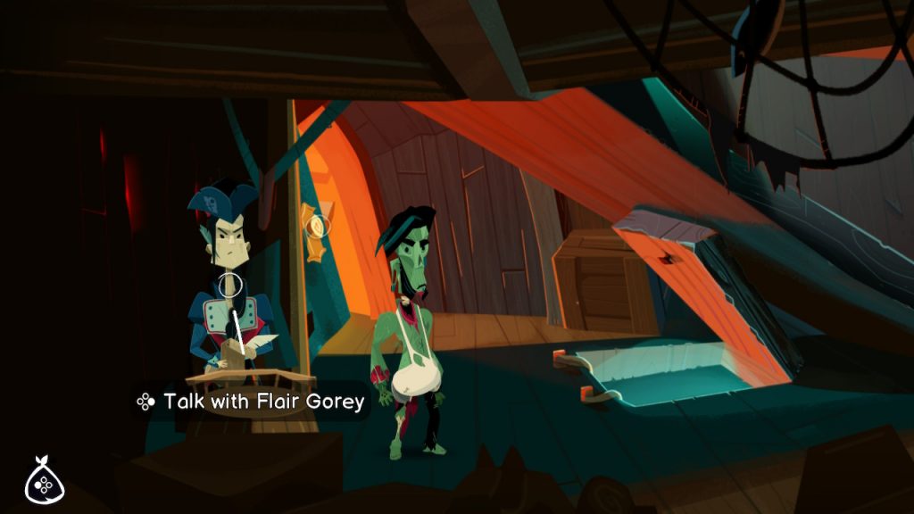 Porozmawiaj z Flair pod pokładem, a ona ujawni, że pracuje nad pisaniem muzyki do piosenki przewodniej LeChucksa. Ona ci go nie da, więc musisz ją od niego oderwać na tyle długo, by go złapać. Wyjdź na pokład i zadzwoń dzwonkiem za kołem statku, aby rozpocząć głosowanie.