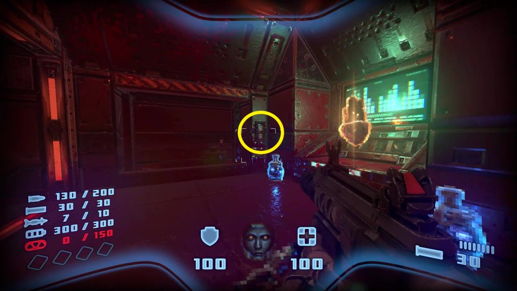 #1: Kiedy dotrzesz do pierwszego punktu Nexus, spójrz w górę, a zobaczysz automapę poziomu w wycięciu na ścianie nad tobą. Użyj dwóch pobliskich półek jako odskoczni, aby do niego dotrzeć.