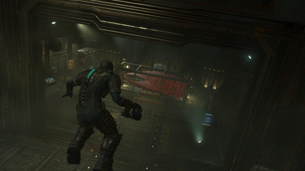 Po rozprawieniu się z wrogami podleć do modułów sterujących gąsienicami na szczycie konstrukcji, do której załadowałeś baterię. Dwukrotnie wejdź w interakcję z ekranem znajdującym się najbliżej znacznika, aby kontynuować wzdłuż wieszaka. Kiedy to zrobisz, pojawi się więcej nekromorfów.