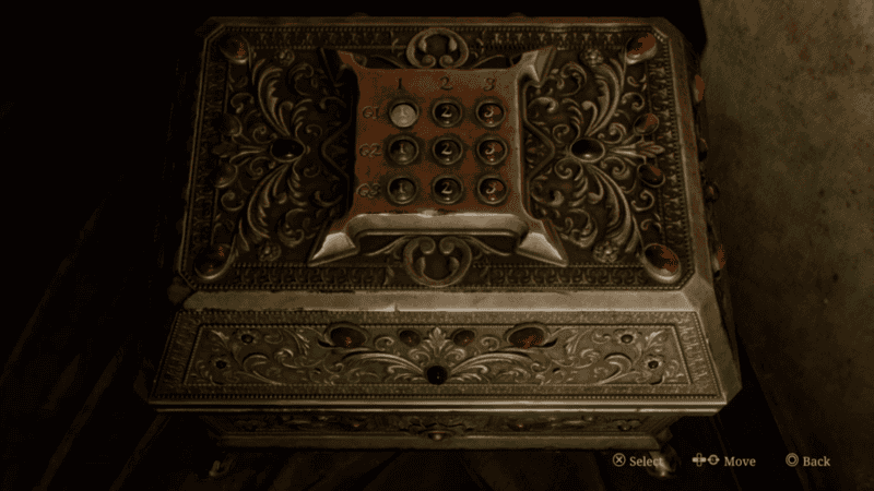 Teraz, gdy znasz odpowiedź, przejdź przez piwnicę, aż ponownie spotkasz się z Marią. Gdy już to zrobisz, udaj się na pierwsze piętro. Zanim wejdziesz do windy, wejdź do otwartej apteki po drugiej stronie korytarza. W rogu pokoju stoi Ozdobne Pudełko. Wpisz poprawny kod, aby otrzymać kilka aptecznych strzykawek i naboi do strzelby. Jeśli udzielisz błędnej odpowiedzi, pudełko się nie otworzy, a James odniesie pewne obrażenia, a więcej błędnych odpowiedzi spowoduje większe obrażenia.