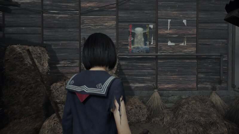 - Plakat nr 1: Na polu ryżowym na południe od domu Rinko idź do domu na dalekim południowo-wschodniej części. Jest pochylony kawałek gruzu Hinako może się poruszać, aby dotrzeć na podwórko. Plakat filmowy znajduje się na podwórku, na ścianie domu.