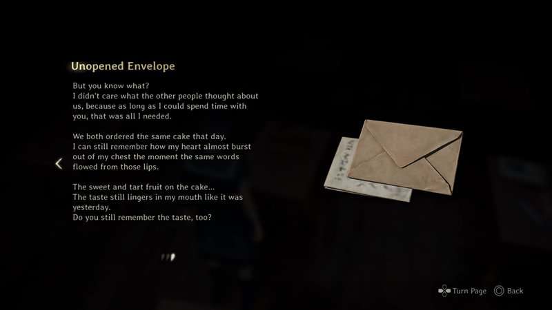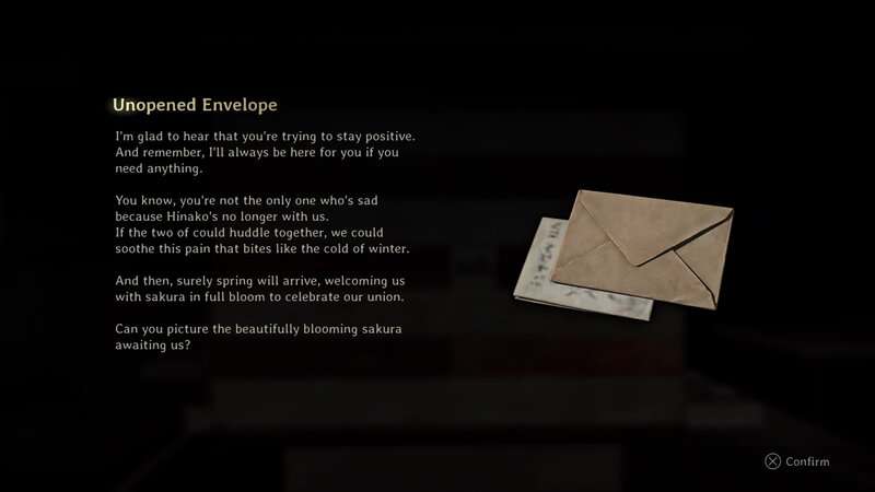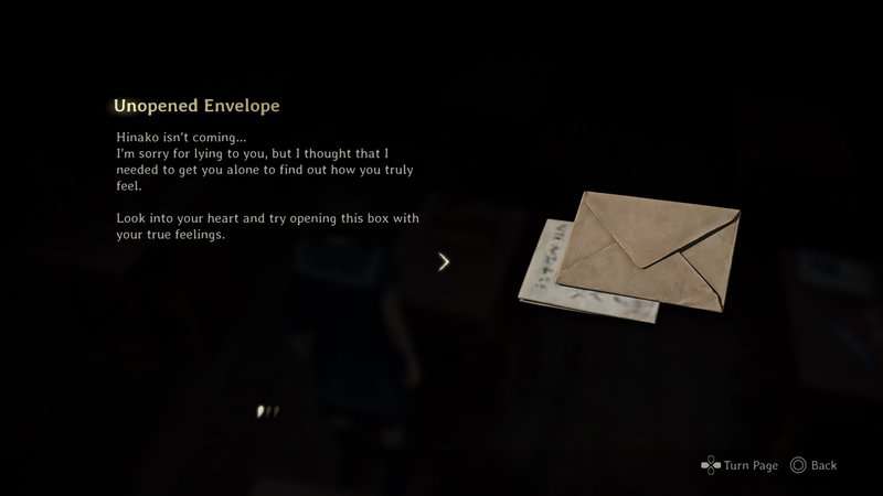 Po otwartym pudełku znajdziesz kolejną nieotwarcą kopertę. Ta druga nieotwarta koperta widzi, że Rinko mówi Shu, że chce napisać z nim nowe rozdziały swojego życia. Będziesz musiał przesunąć pokrowce po obu stronach pudełka, aby ujawnić wszystkie zdjęcia książek. Z jednej strony znajduje się w sumie 5. Książki są w prawym górnym, środkowym lewym i dolnym lewym. Z drugiej strony jedyna książka jest w prawym środku. Po wyświetleniu wszystkich książek naciśnij przycisk Potwierdź, aby otworzyć drugą warstwę pudełka.