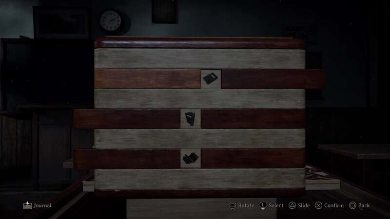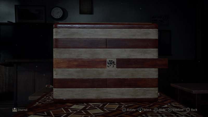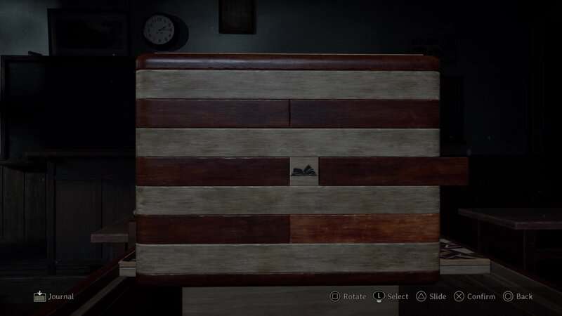 Puzzle tajnej pudełka można znaleźć w klasie południowo -zachodniej na 2. piętrze gimnazjum Ebisugaoka. Uzyskasz dostęp do tej podłogi po ukończeniu układanki z klatki schodowej. Po wejściu do klasy drzwi zamykają się za tobą. Będziesz musiał rozwiązać tę łamigłówkę, aby uciec. Idź do biurka Rinko na środku pokoju, aby znaleźć tajne pudełko i pierwszy nieotwarty dokument koperty, który da ci wskazówkę na temat otwarcia tego pudełka.