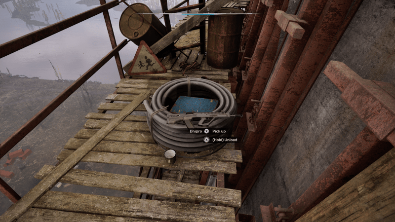 Pojawisz się na szczycie wieży chłodniczej. Pobiegnij do końca chodnika, aby znaleźć ukrytą skrytkę w oponie i Dniepr Karabin szturmowy. W pobliżu karabinu znajduje się także miejsce, z którym możesz wejść w interakcję siedzieć i ciesz się niesamowitym widokiem na elektrownię jądrową w oddali, zapewniając najlepszy możliwy widok na SMÓWCA 2 mapa.