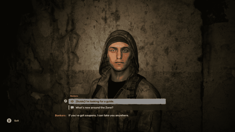 Korzystanie z przewodnika to: podróż w jedną stronę i trzeba z nimi porozmawiać bezpośrednio do szybkiej podróży. Nie możesz szybko podróżować z niebezpiecznego obszaru. Będziesz musiał udać się do osady, a możesz podróżować tylko z jednej osady do drugiej. Mapa w STALKER 2 jest niewiarygodnie duży, to wciąż ważna usługa. Kiedy mapa się powiększy i będziesz zmuszony przejść z jednej strony mapy na drugą, przejście zajmie bardzo, bardzo dużo czasu. JEŚLI potrzebujesz wrócić do poprzedniego regionu i chcesz zabrać ze sobą wszystkie swoje rzeczy, jest to najlepszy sposób.