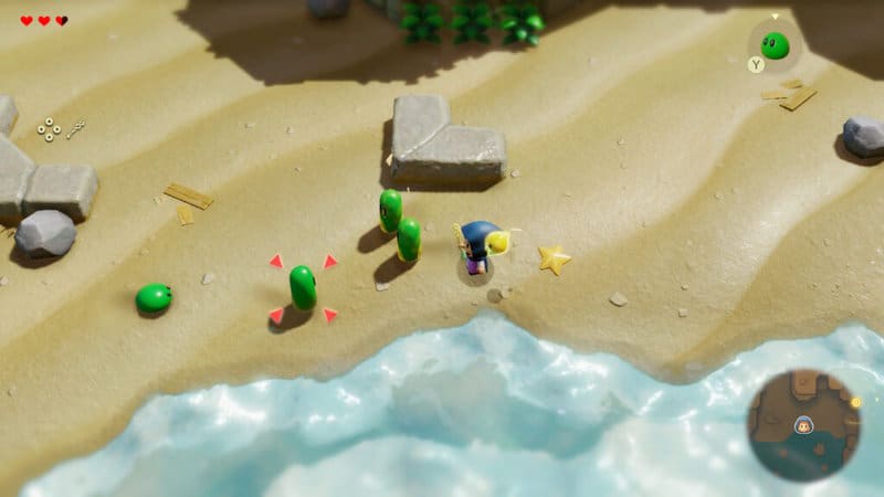 Zelda nie może bezpośrednio atakować zielonych potworów na plaży. Potrafi się kręcić [R] ale to nie zada obrażeń wrogom. Zelda nadal będzie otrzymywać obrażenia za dotknięcie wrogów. Nie możesz także przywoływać echa na wrogów — przywołanie echa jedynie odepchnie wrogów. Nie zaszkodzi im to.