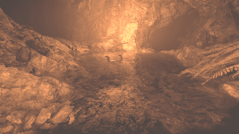 W stodole znajdują się drabiny prowadzące do podziemnego wałka górskiego. Podążanie ścieżką prowadzi do nieprzeniknionej ściany z ogniem drewnianych wiązek z korpusem po drugiej stronie. Nie możesz przejść, ale możesz zobaczyć coś dziwnego w wodzie. Użyj mikstury z Nighthawk, aby uzyskać lepszy wygląd – jest dinozaury w stawie w pobliżu wygodnego ciała. I niestety nie możesz zbliżyć się wystarczająco, aby z nimi wiele z nimi zrobić.